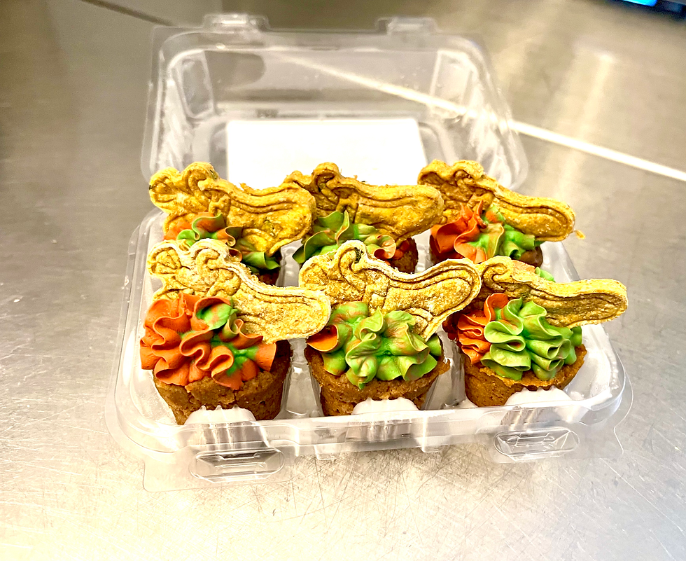 All pupcakes require refrigeration for up to 2 to 3 weeks as they are made with a non-fat Greek yogurt frosting. You may also freeze them for even longer freshness. They come in a 6 or 12 pack. They cannot be shipped. Only local beaches delivery or pick-up is available at this time. Ingredients & health benefits are listed under each treat.